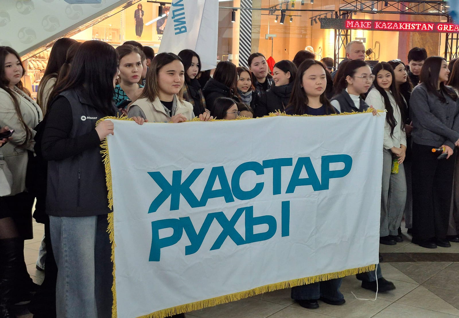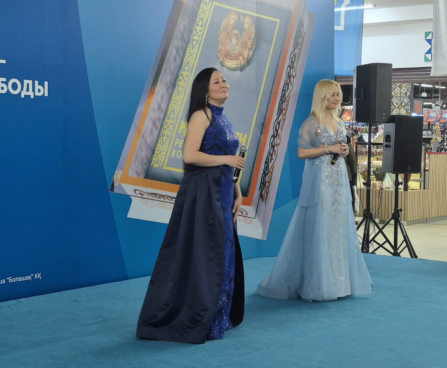Сауда орталығына кіреберісте келушілерге жаңа Конституция жобасы туралы ақпараттық брошюралар таратылып, концерттік бағдарламаны тамашалауға шақырылды. Сахнада әртістер көпшілікке жақсы таныс патриоттық әндерді орындап, көрермендер оларға қосылып, бірге ән айтты.