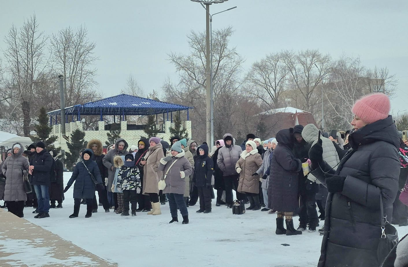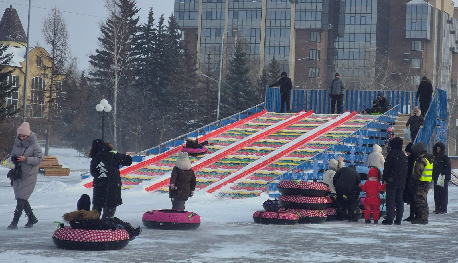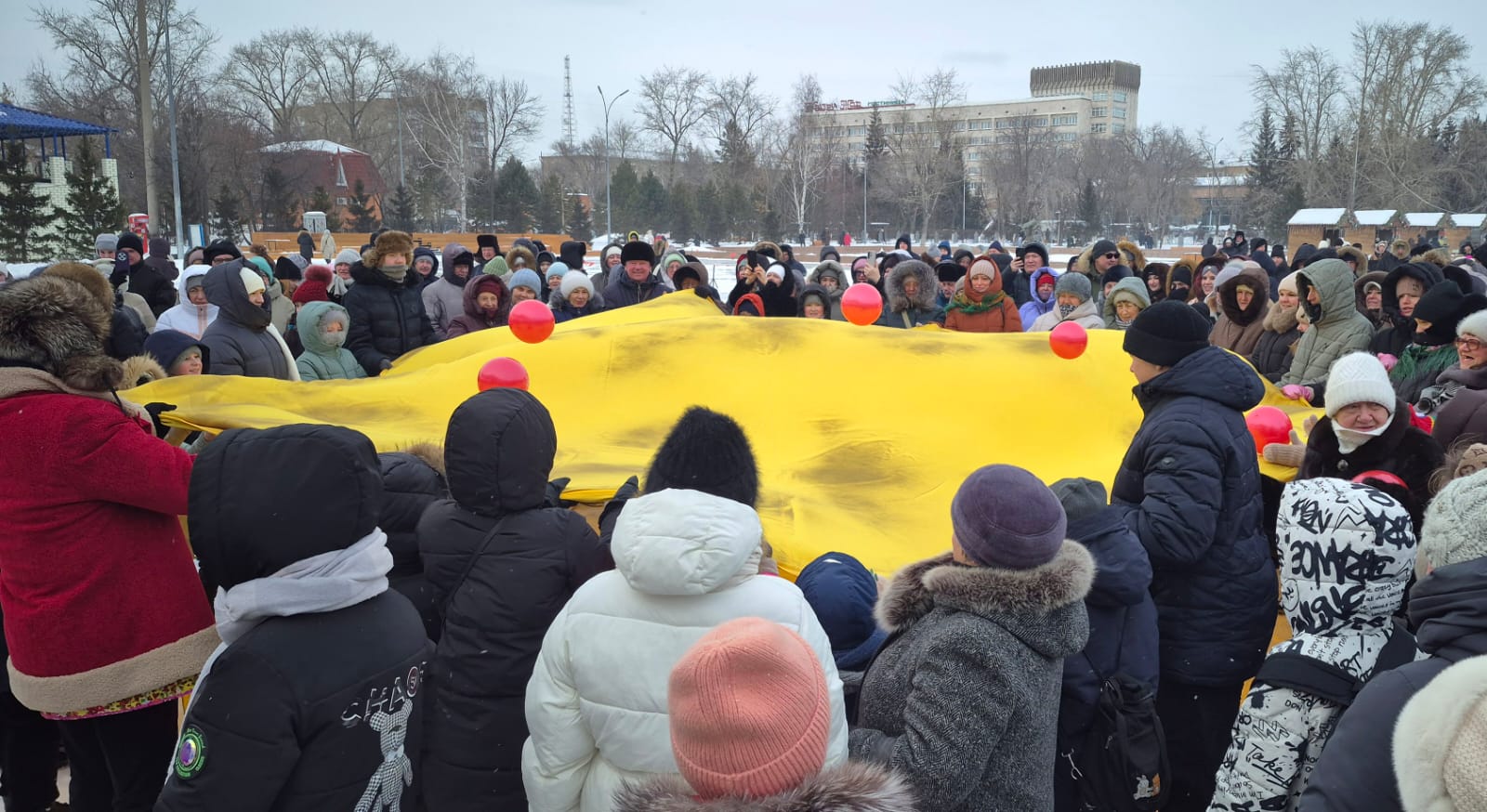 Многие приходили целыми семьями, чтобы разделить радость гуляний и зарядиться весенним настроением. Детишки катались с яркой горки, которая была рядом с площадкой, весело смеялись и играли. Также гости праздника могли согреться горячими напитками и попробовать вкусные угощения от местных предпринимателей. Плов, шашлыки, блины - разнообразие блюд радовало пришедших и согревало в морозный день.