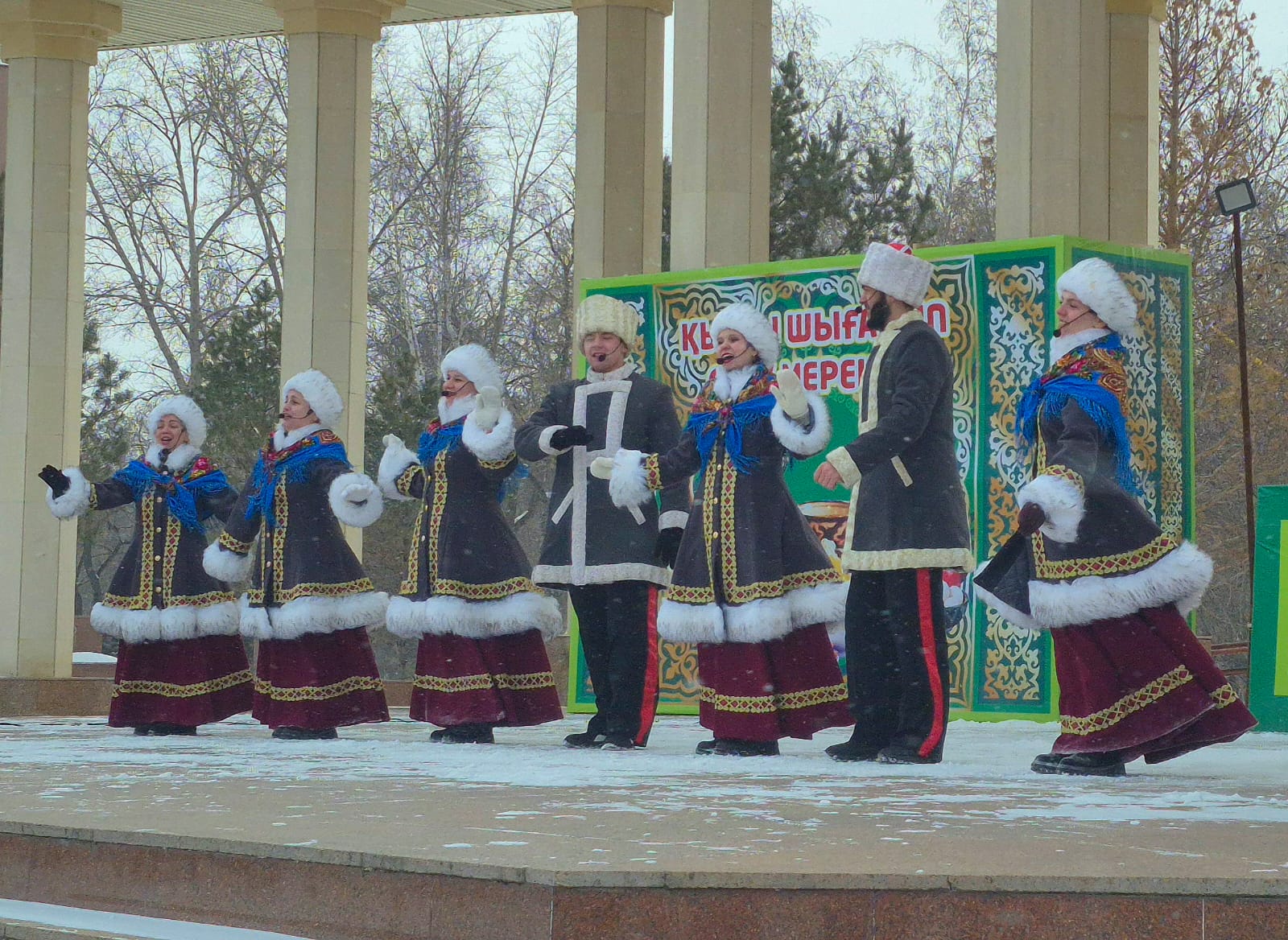 Праздничное настроение создавали и артисты в ярких костюмах, которые вместе с североказахстанцами выходили на площадь, водили хороводы и вовлекали всех в общее веселье. Несмотря на непогоду, на празднике было многолюдно - жители активно поддерживали выступающих, участвовали в играх и не позволили капризам погоды помешать теплой и дружной атмосфере.